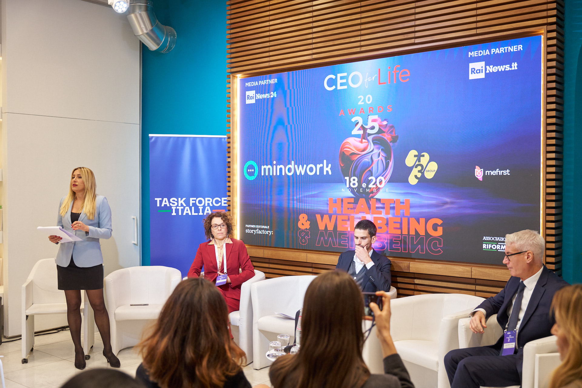 Stefano Luconi – Iris Ceramica Group | Patrizia Manganaro – Lipari Consulting | Giorgia Chiantella – Iberdrola Italia | Cristina Di Loreto – Me First ® | Andrea Schiroso – T3 Group | Mario Alessandra – Mindwork | Caterina Vergata – Whiteall Replay AI | Paolo Pagliarini – Daiichi Sankyo | Diego D’Amato – Bureau Veritas Italia | Donatella Pugliese – ENEL | Francesca Stacchiotti – Trenitalia | Michela Agus – KARL STORZ Endoscopia Italia | Massimiliano Maini – La Soluzione S.p.A. | Stefano Nobili – MA Group | Nicola Iacopelli – BEE IT Società Benefit | Silvia Gabbioneta – Nokia Italia | Christian Poehlking – Boehringer Ingelheim (premiato per Prevenzione, Welfare, Sanità & Salute) |