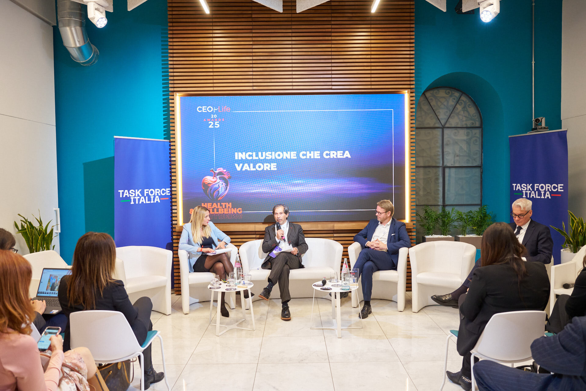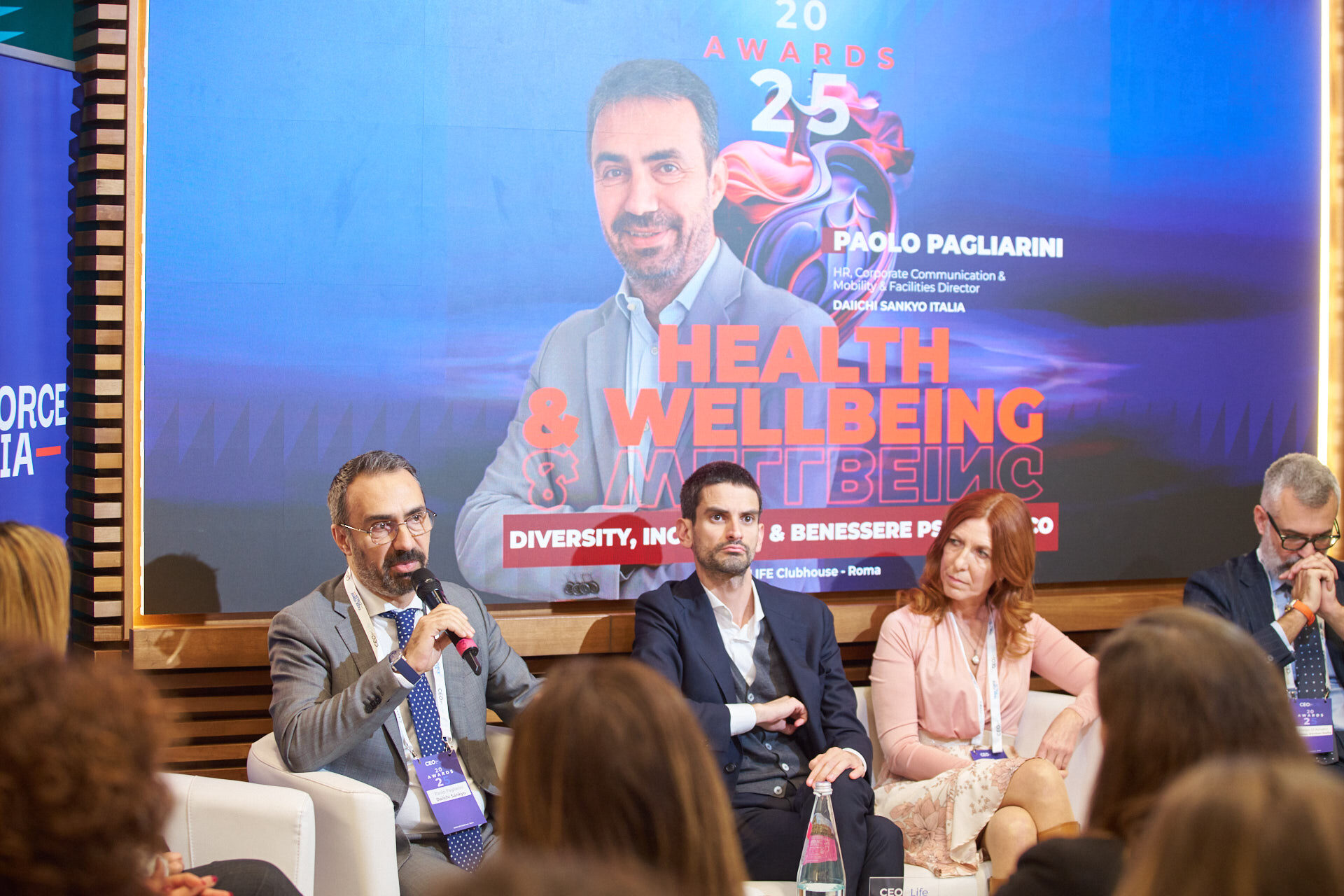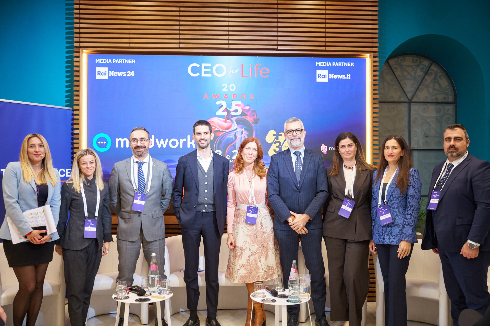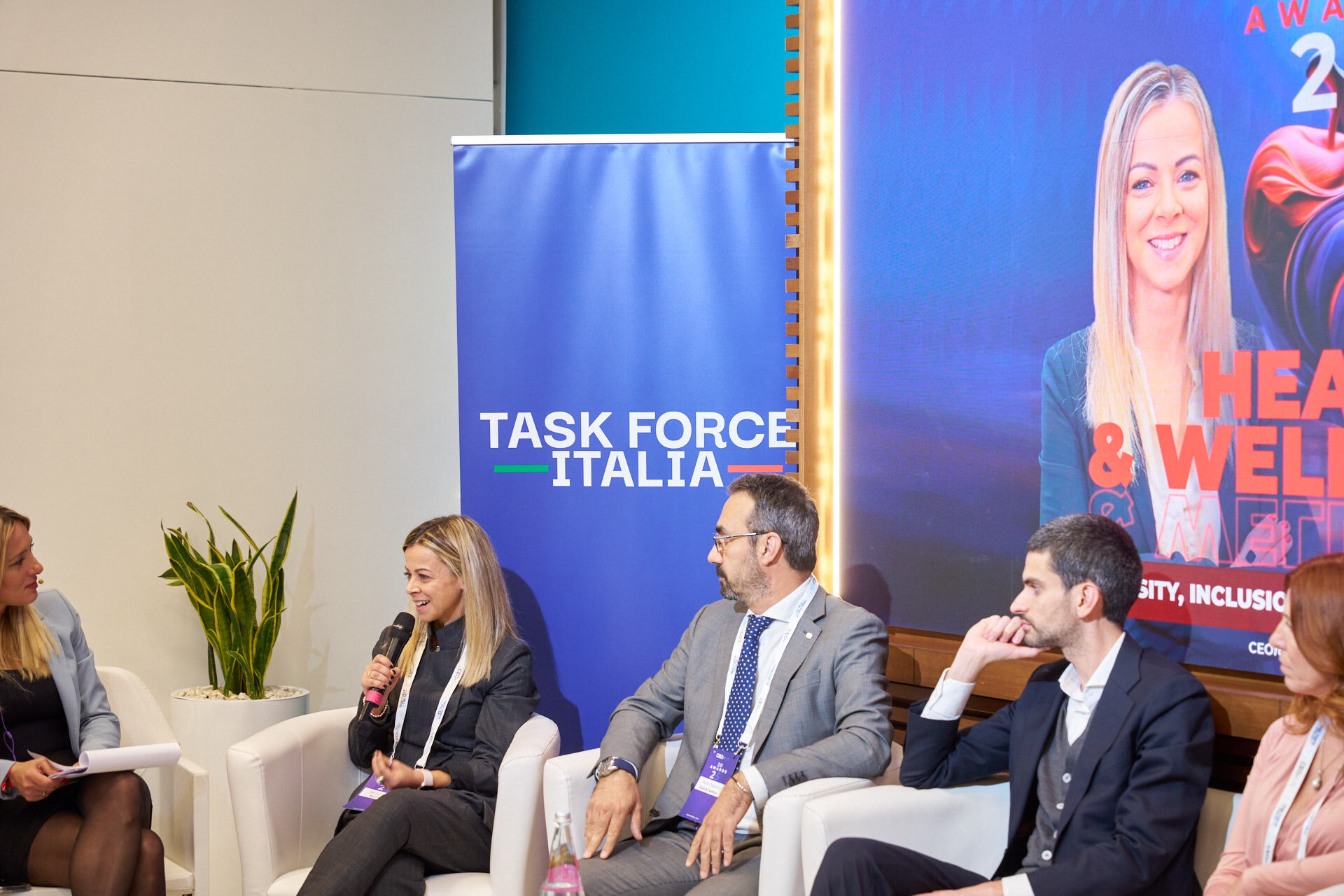 Stefano Luconi – Iris Ceramica Group | Patrizia Manganaro – Lipari Consulting | Giorgia Chiantella – Iberdrola Italia | Cristina Di Loreto – Me First ® | Andrea Schiroso – T3 Group | Mario Alessandra – Mindwork | Caterina Vergata – Whiteall Replay AI | Paolo Pagliarini – Daiichi Sankyo | Diego D’Amato – Bureau Veritas Italia | Donatella Pugliese – ENEL | Francesca Stacchiotti – Trenitalia | Michela Agus – KARL STORZ Endoscopia Italia | Massimiliano Maini – La Soluzione S.p.A. | Stefano Nobili – MA Group | Nicola Iacopelli – BEE IT Società Benefit | Silvia Gabbioneta – Nokia Italia | Christian Poehlking – Boehringer Ingelheim (premiato per Prevenzione, Welfare, Sanità & Salute) |