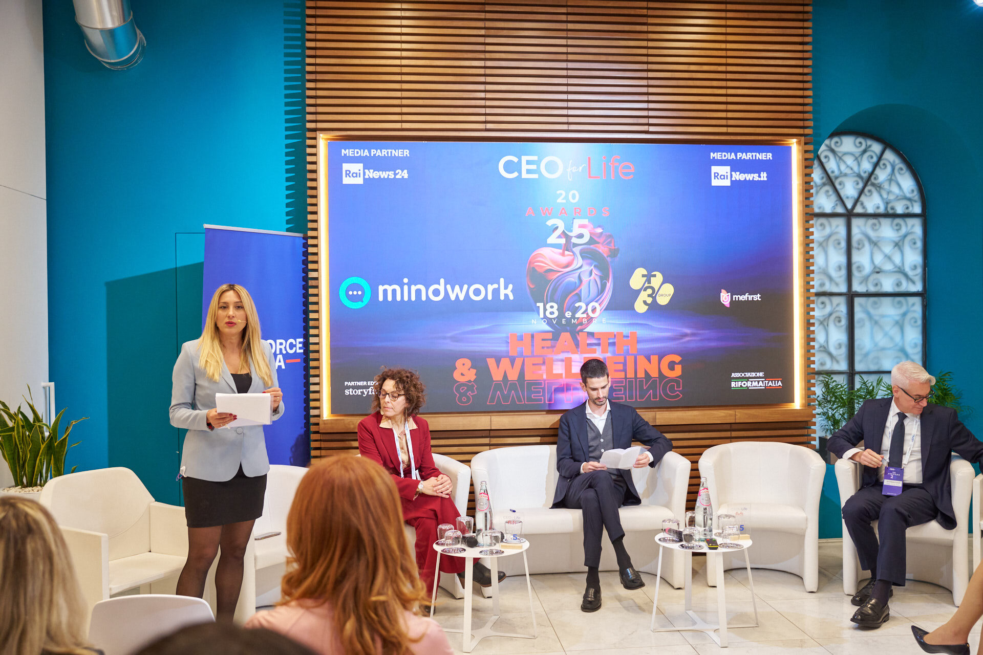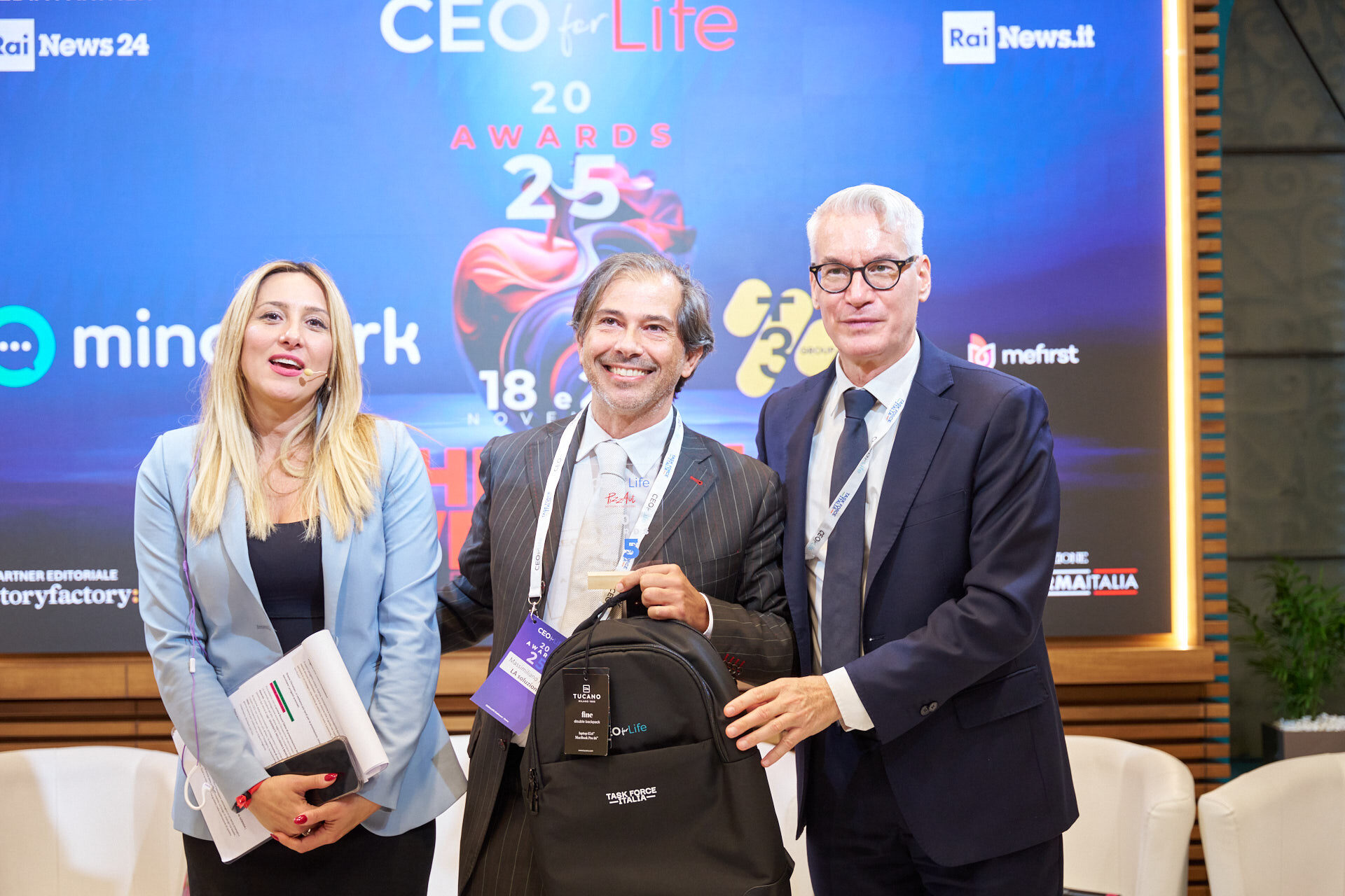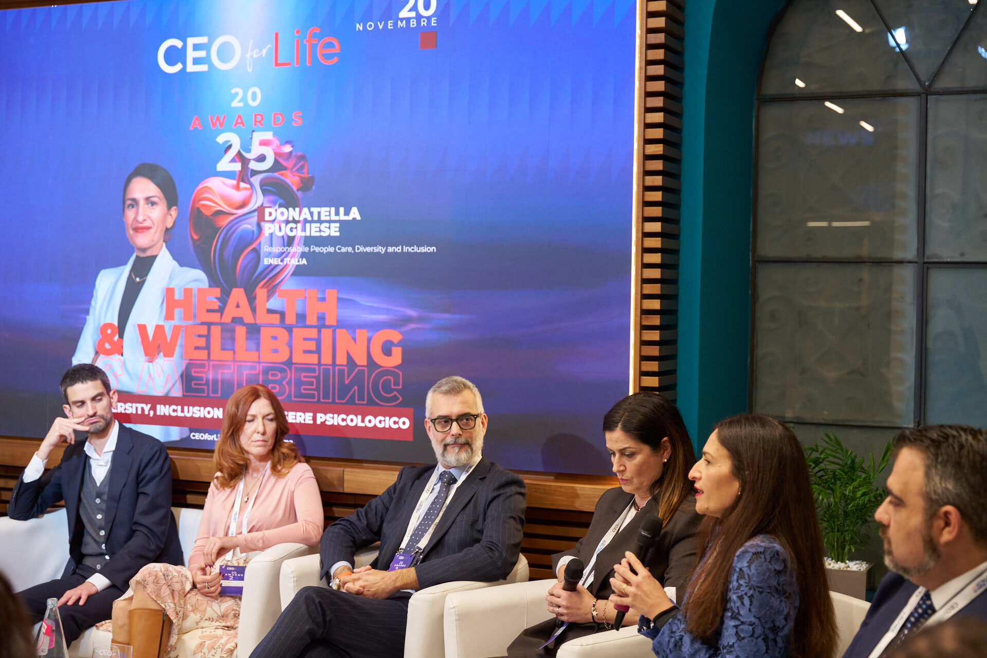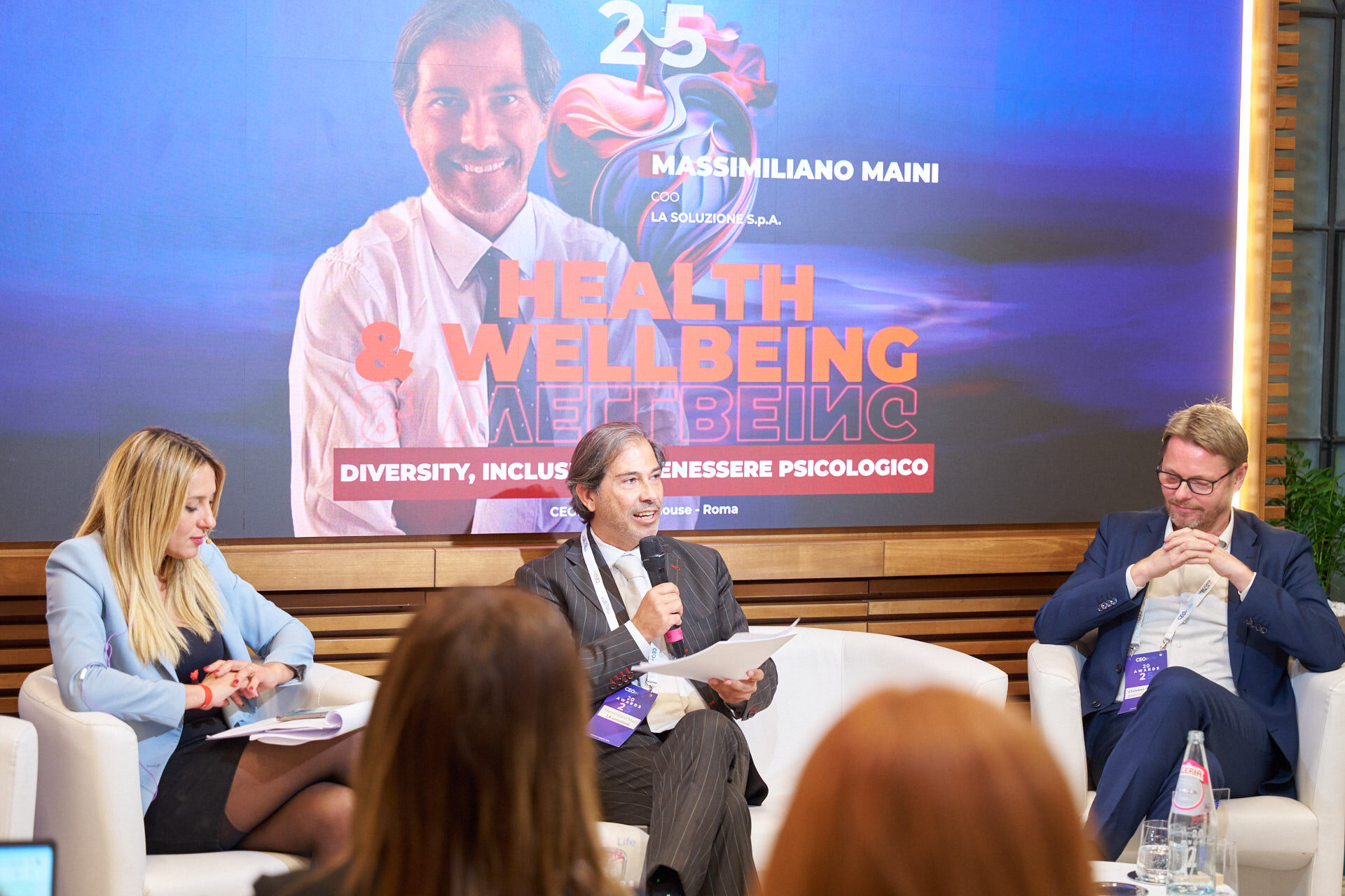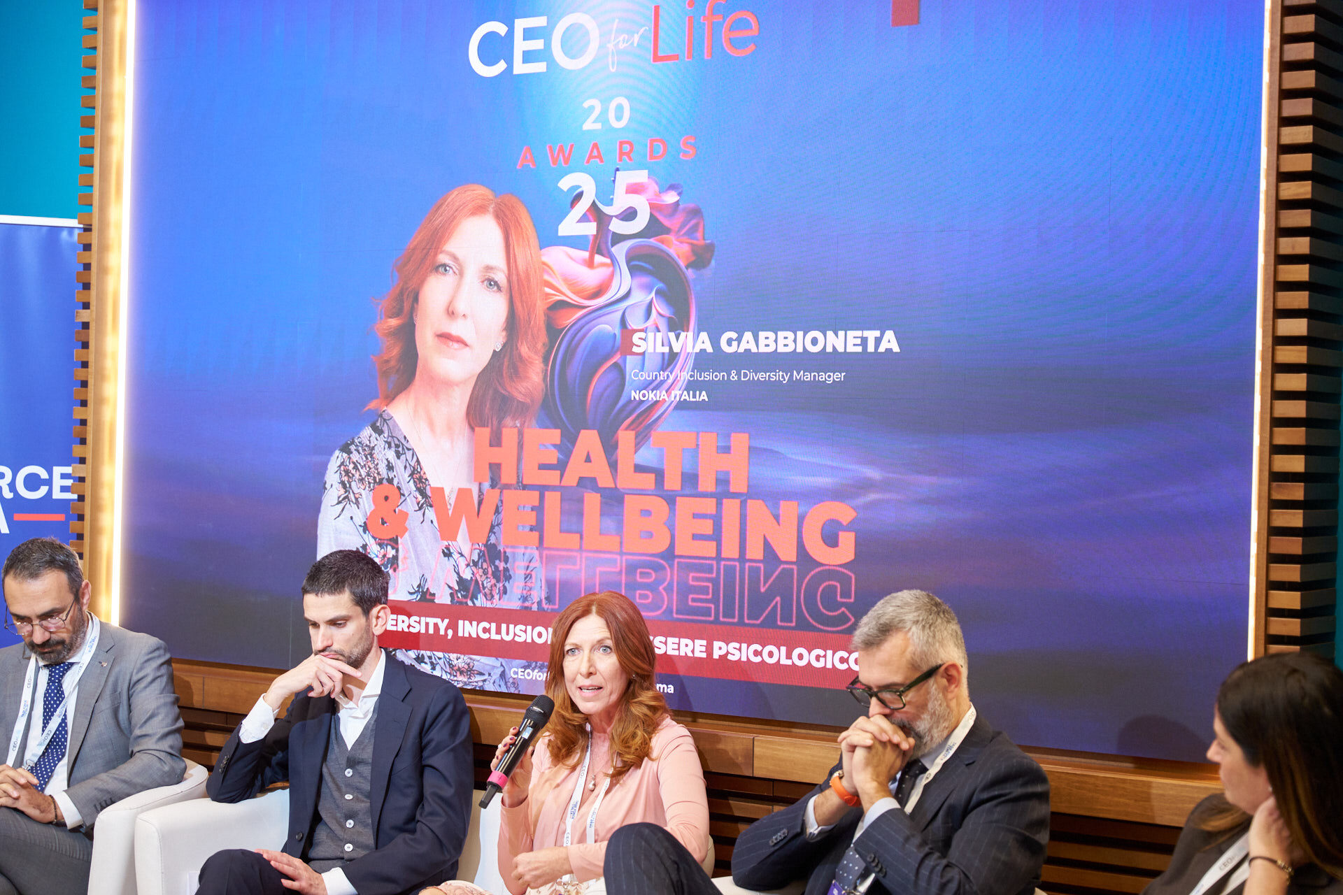 Stefano Luconi – Iris Ceramica Group | Patrizia Manganaro – Lipari Consulting | Giorgia Chiantella – Iberdrola Italia | Cristina Di Loreto – Me First ® | Andrea Schiroso – T3 Group | Mario Alessandra – Mindwork | Caterina Vergata – Whiteall Replay AI | Paolo Pagliarini – Daiichi Sankyo | Diego D’Amato – Bureau Veritas Italia | Donatella Pugliese – ENEL | Francesca Stacchiotti – Trenitalia | Michela Agus – KARL STORZ Endoscopia Italia | Massimiliano Maini – La Soluzione S.p.A. | Stefano Nobili – MA Group | Nicola Iacopelli – BEE IT Società Benefit | Silvia Gabbioneta – Nokia Italia | Christian Poehlking – Boehringer Ingelheim (premiato per Prevenzione, Welfare, Sanità & Salute) |