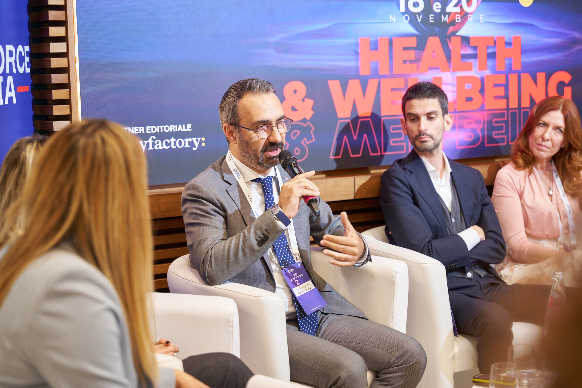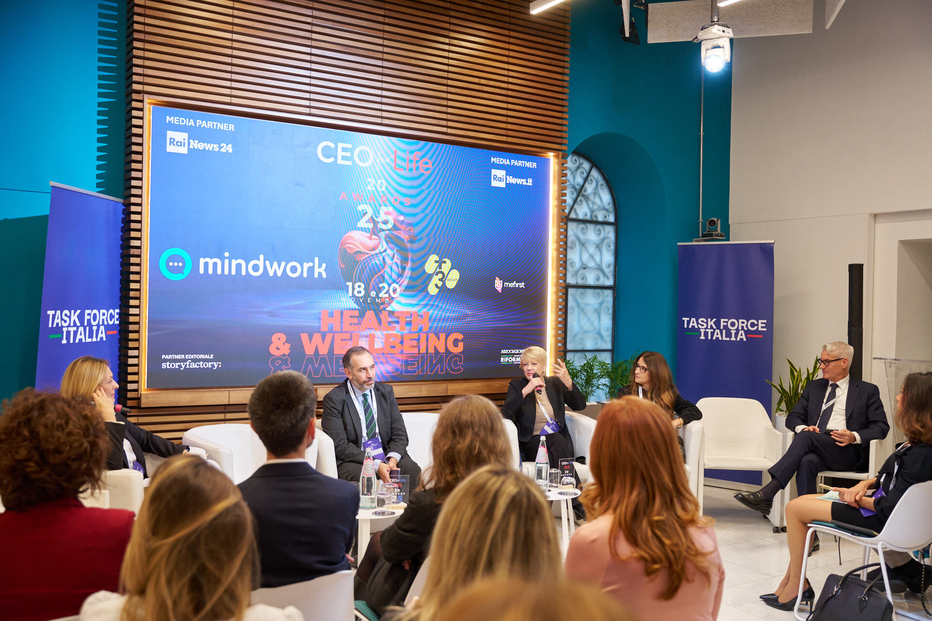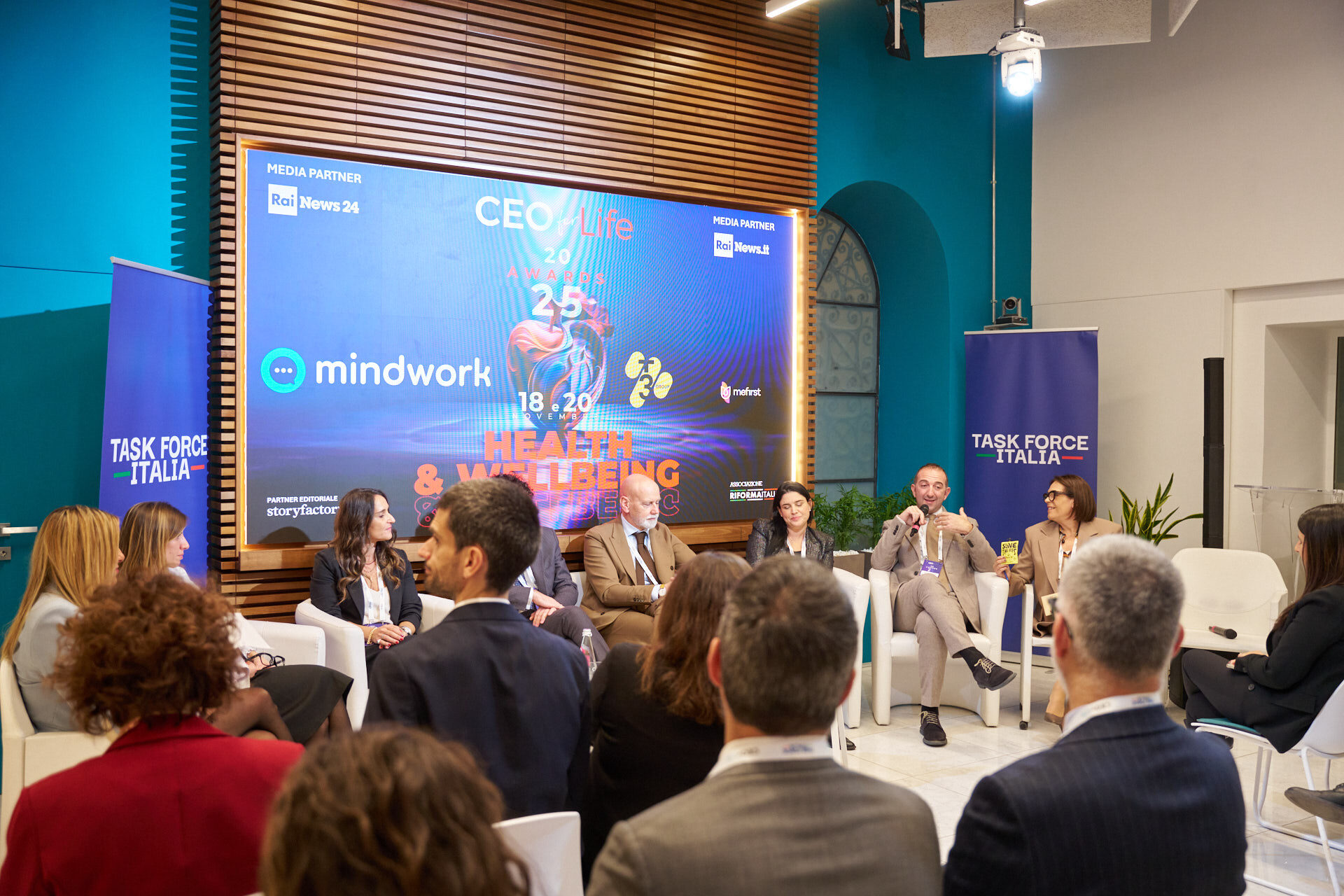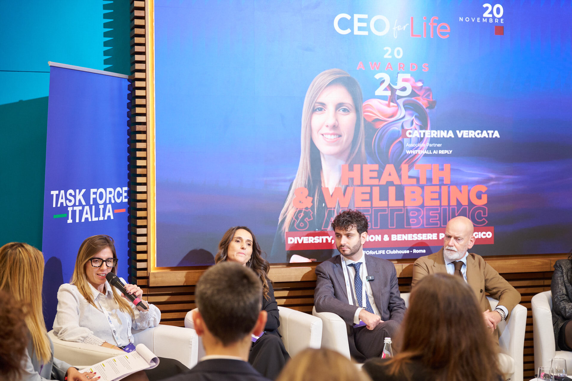 Stefano Luconi – Iris Ceramica Group | Patrizia Manganaro – Lipari Consulting | Giorgia Chiantella – Iberdrola Italia | Cristina Di Loreto – Me First ® | Andrea Schiroso – T3 Group | Mario Alessandra – Mindwork | Caterina Vergata – Whiteall Replay AI | Paolo Pagliarini – Daiichi Sankyo | Diego D’Amato – Bureau Veritas Italia | Donatella Pugliese – ENEL | Francesca Stacchiotti – Trenitalia | Michela Agus – KARL STORZ Endoscopia Italia | Massimiliano Maini – La Soluzione S.p.A. | Stefano Nobili – MA Group | Nicola Iacopelli – BEE IT Società Benefit | Silvia Gabbioneta – Nokia Italia | Christian Poehlking – Boehringer Ingelheim (premiato per Prevenzione, Welfare, Sanità & Salute) |