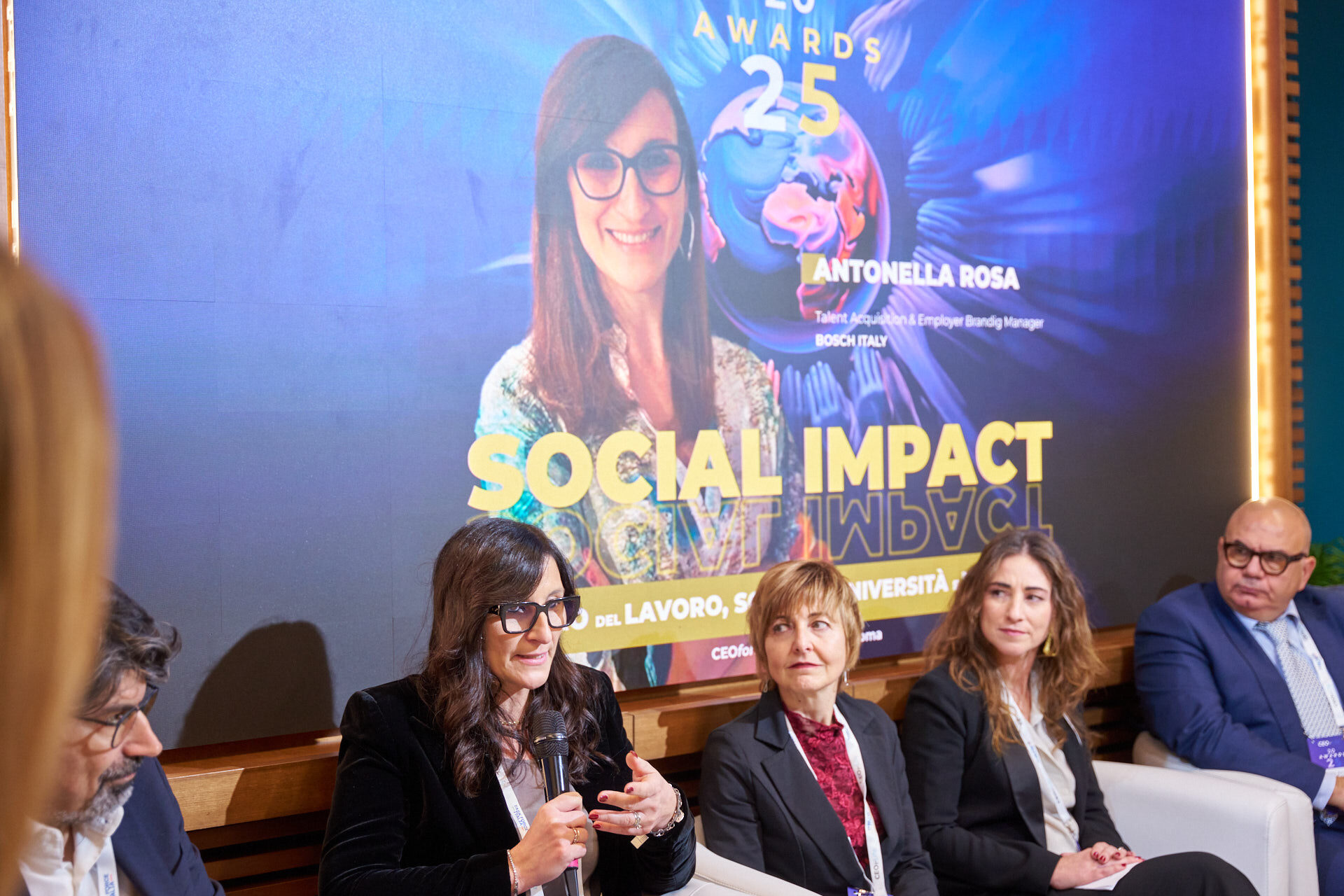 Stefano Marinaz – Alleanza Assicurazioni | Antonella Rosa – Bosch Italia | Davide Zardo – Schneider Electric | Don Giuliano Giacomazzi – Cnos-Fap | Stefano Carone –  Il Prisma | Nicola Patrizi – Federterziario | Davide Tassi – Enav | Rachele Bitelli – Iberdrola Italia | Stefano Pacchioli – Dorna WSBK | Marco Procacciante – Vision Group S.p.A. | Vito Amati – Algeco | Elisa Zambito Marsala – Intesa Sanpaolo | Nella Saracco – ARCA Partners | Daniele Tonti – OMA | Pier Paolo Colasanti – ICF ITALIA 2025 | Francesco Di Ciommo – FDC Consulting | Alessandro Mele – Julia Volley | Alessio Lechiara – Econocom Italia (Premiato per Diversitiy, Inclusion & Benessere Psicologico) | Emanuela Verzeni – Asystel-BDF (Premiata per Diversitiy, Inclusion & Benessere Psicologico) | Cecile Renault – Findomestic Banca (Premiata per Educazione Finanziaria & PMI) |